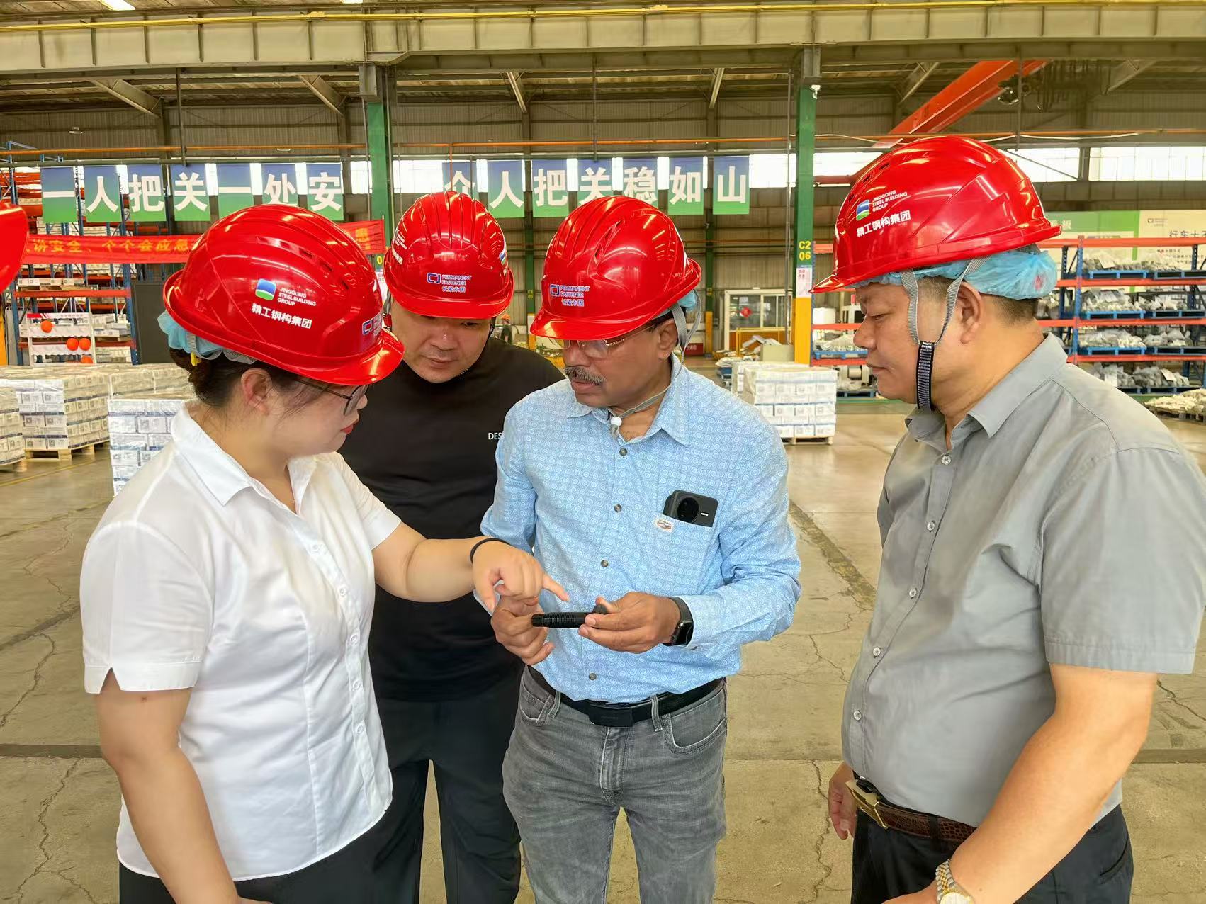 隨后,印度客人走進(jìn)長江緊固件生產(chǎn)車間,實(shí)地參觀了從原材料處理到拉絲、溫鐓、磷皂化、熱處理及表面處理的全流程生產(chǎn)線。工廠內(nèi)自動化、數(shù)字化的制造模式,以及嚴(yán)格的質(zhì)量管控體系,給外賓留下了深刻印象。